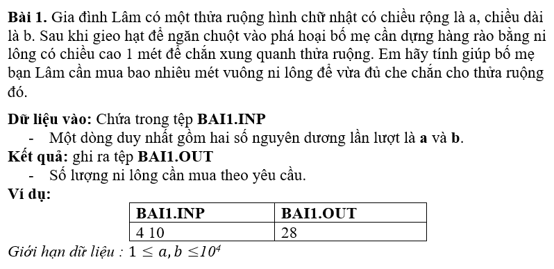 Dữ liệu vào: