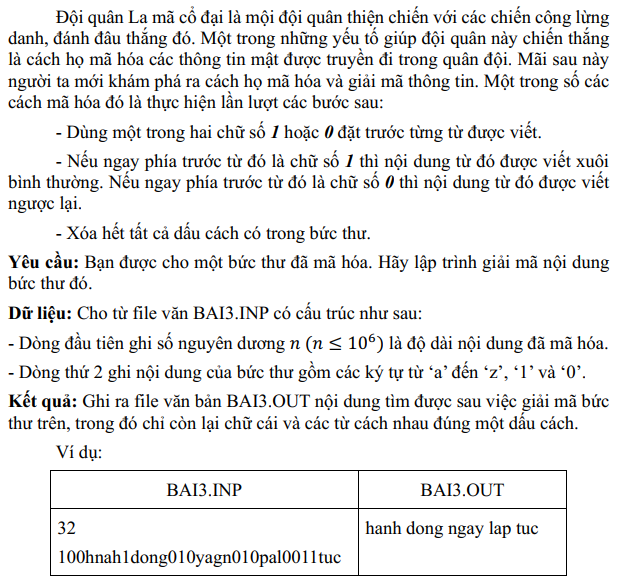 Dữ liệu vào:
