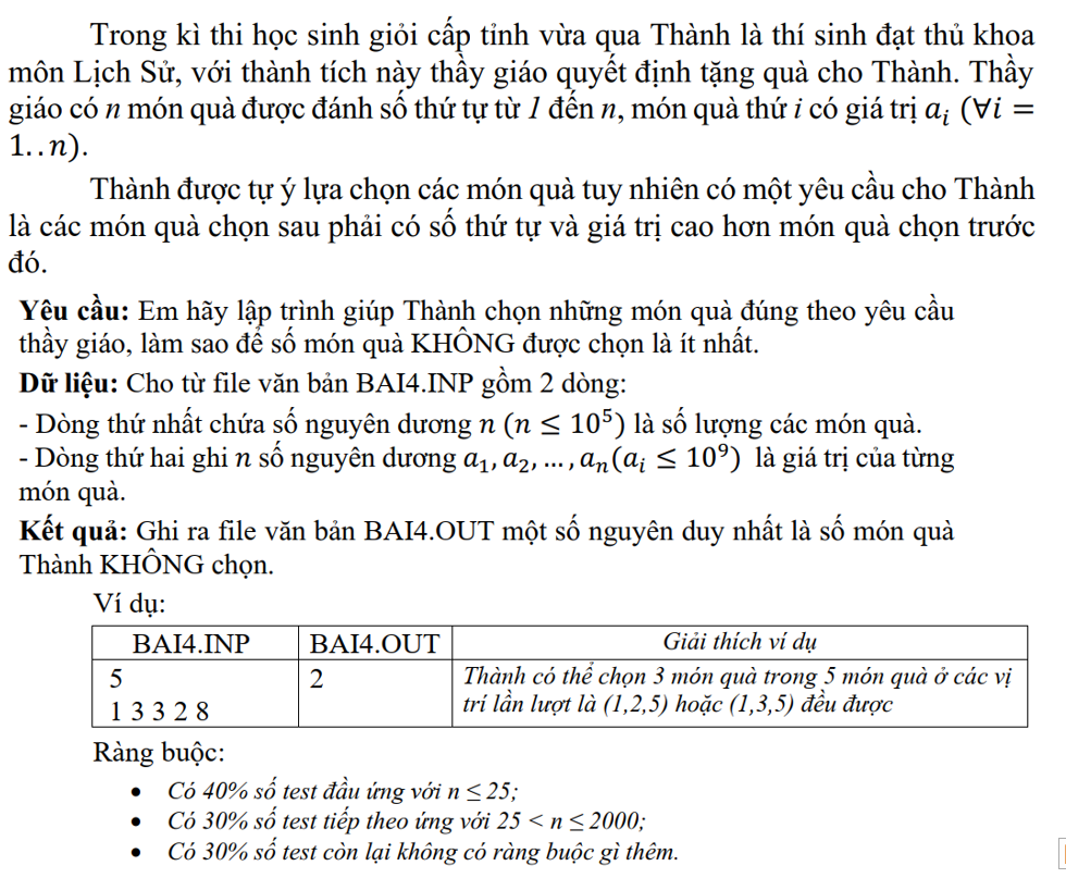 Dữ liệu vào: