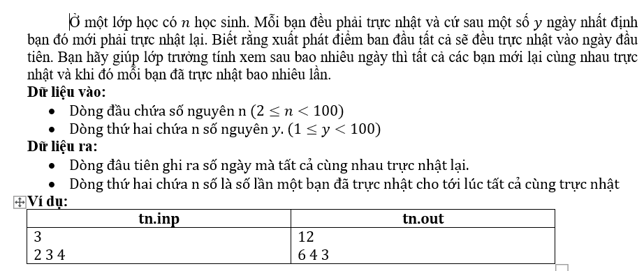 Dữ liệu vào: